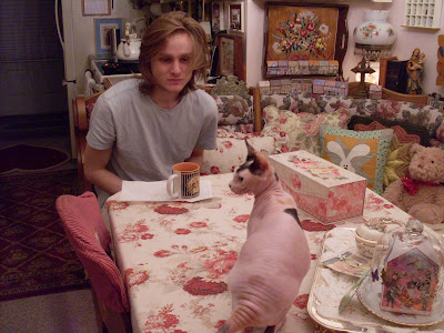 Welcome to the COZY COTTAGE. This is the furever home of the memory of Miss Peach, our 18 year old Devon Rex angel kitty. I am Miss Hunny Bunny, she asked me to pour you a cuppa catmint tea as you read our old fashion mewsings about this and that. Please come by often...one lump or two? Now our precious Hunny Bunny is also an angel cat...please let me be your hostess at the cozy cottage...my name is Miss Hope.