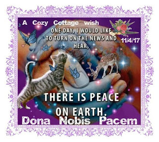 Dear friends...while we are ALL still well...we need to take some time off from our bloggy. The cozy cottage has always been a comfortable place of respite no matter what the seasons have brought. Now we are weathering a great storm in our lives...one that involves our relationship with some of those we love very dearly. So mommy has the sads quite badly and I am the only one who seems to be able to help her with my warmth and purrs. I am doing a good job each day and we HOPE the you would purrr and pray for us. We long for the day when we can come back with better news. Thank you for loving us and not forgetting us...this all happened on the day of our 10th blog anniversary...we are sorry we could not celebrate it with all of you. We believe time is a tonic...may it be so.