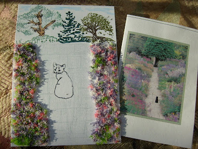 Welcome to Cat Art Sunday! We are having quite a party this weekend. The postcards above came all the way from Germany to help wish mommy a Happy Birthday. Luna and Bonnie's mommy sent them...This has been a very busy cat art week to say the least... This ATC was made by mommy for The Twelve days Of Christmas swap. She calls it "Four cozy kitties waiting for four birds to come a calling"